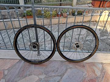 ruote in alluminio per ciclocross,marca Oval dotate di copertoni da 33mm Challenge usati 2 volte. Con cassetta Sram 11/32 e dischi Sram.