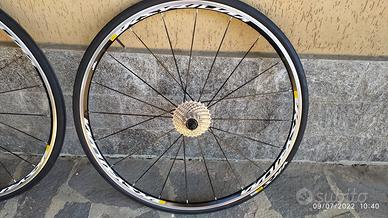 Coppia di Ruote MAVIC KSYRIUM EQUIPE S complete di copertoncini MAVIC YKSION COMP da 25 corpetto ruota libera Shimano, escluso pacco pignoni.