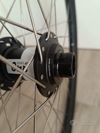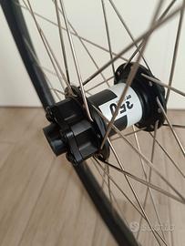 Vendo per cessata attività coppia di ruote mullet Downhill così costruite: - Mozzo anteriore DT Swiss 350 20*110 con adattatore per standard boost; - Mozzo posteriore DT Swiss 350 150*12 con possibilità di essere convertito in 157*12; - Cerchio anteriore DT Swiss FR541 29" - Cerchio posteriore DT Swiss FR571 27.5" - Raggi DT Swiss competition 2/1.8 mm, nippli pro lock 14 mm ottone Le ruote sono nuove, mai utilizzate causa infortunio. Vengono vendute centrate, tensionate a 120 kgf e nastrate per tubeless.