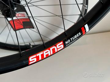 Vendo coppia di ruote STAN’s BARON MK3 27,5” nuove, mai montate e con ancora il loro imballo originale. Le ruote hanno entrambi i mozzi STAN’s NEO, attacco freno a 6 bulloni e corpetto SRAM XD (allo stesso prezzo posso montare il corpetto Shimano). Mozzo anteriore 15x110, posteriore 12x148. Il canale interno è da 35mm, i cerchi sono Tubeless e dotati giá di valvole.