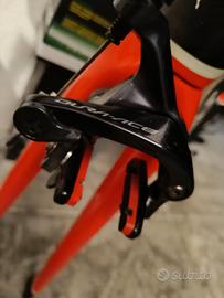 Vendo coppia di freni (anteriore e posteriore) Shimano Dura-Ace serie R9100, il top di gamma assoluto per sistemi a pattino (rim brake). I freni sono in ottime condizioni estetiche e funzionali, smontati da bici regolarmente revisionata. Si tratta della versione più evoluta e potente mai prodotta da Shimano per il sistema frenante tradizionale, caratterizzata da una rigidità eccezionale e una frenata modulabile e potente. compreso pattini per ruota in carbonio