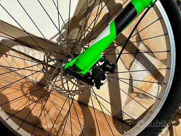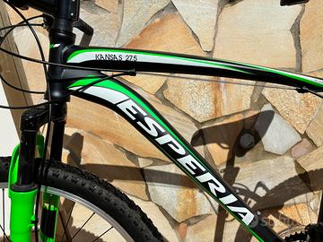 Vendo purtroppo causa inutilizzo ottime mountain bike marchio esperia, no decathlon, comprate da un rivenditore di bici, verde taglia 27,5 con freno anteriore a disco, gialla taglia 26, normali segni di usura, ma ancora in ottime condizioni, tenute sempre al chiuso, no ruggine. Cedo anche trasportino da attaccare alla macchina.