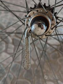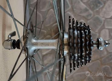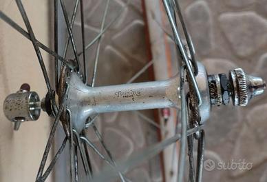 Coppia ruote 28 gomme tubolari Come da foto ruote 28 con TUBOLARI da sostituire, mozzi Touring, cerchi in alluminio Nisi. Scorrevoli e centrate, mancano le 4 molle degli sganci rapidi. Ruota libera Regina Extra 6V. Posso spedire. Contatti anche Whatsapp al 3387240527. Euro 25.