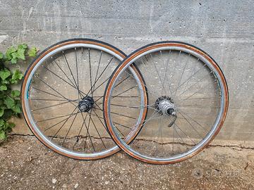 coppia ruote bici corsa bimbo ragazzo 22" pollici complete di sganci rapido e cassetta sono presenti anche i tubolari ma non sono in buone condizioni