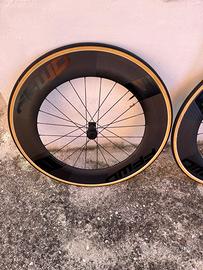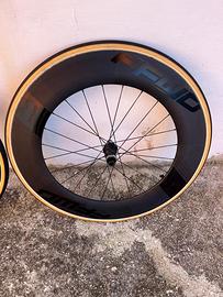 Vendo Coppia Ruote per Freni a Disco in Carbonio mm 90 FFWD ottimo stato corpetto Sram complete di Tubolari Vittoria mm 25 con 400 km