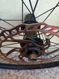 Vendo coppia di ruote 650 in alluminio, smontate da Gravel Cube Nuroad, mozzi per perno passante 12mm, già con dischi, attacco Center lock, corpetto Shimano per 11-12 velocità, cerchio tubeless.