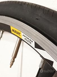 Vendo coppia di ruote praticamente nuove Mavic Aksium Elite pronte da montare, complete di copertoncini Mavic Yksion elite 700x25c, camere d'aria, perni QR e pacco pignoni Shimano 105 da 11 velocità, dentatura 11-32.