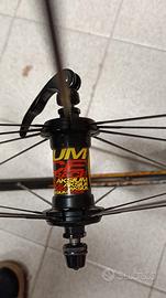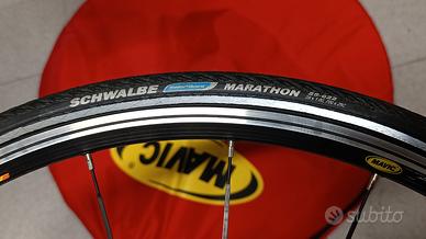 vendo per inutilizzo coppia ruote Mavic Axium Race con raggi piatti complete di copertoncini Schwalbe marathon e pacco pignoni Shimano 105, complete di borse