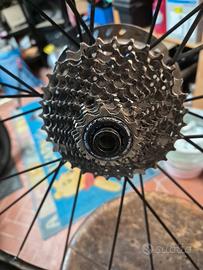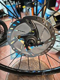 Coppia di ruote Mavic SL 25 Tubeless ready in alluminio complete di pacco pignoni Shimano Ultegra R8000 11-32 piu 2 copertoni continental nuovi da 25mm e 2 Tubeless botranger da 26mm e 2 dischi Ultegra da 160mm.