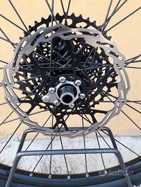 Ruote MTB " Novatec Boosr" Cassetta : 12 v. 11/52 Dischi : ant. : 200. post.: 180 Copertoni : semistradali con c./d'aria 29x2.1 Ruota posteriore con sensore per e-bike (come da foto)