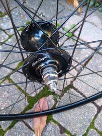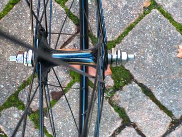 Vendo Coppia ruote pista flip/flop cerchio FIR mozzi Dia compe Grand Compe, total black, raggi SAPIM neri, fatte realizzare e mai usate. tutto materiale nuovo solo assemblato. Il mozzo posteriore è sprovvisto dei dai JIS. Vendo solo in coppia. Per favore astenersi affaristi e perdi tempo. Pista, Fixed gear, fixedgear, scattofisso.