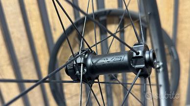 Coppia di Ruote in Carbonio Roval Terra CLX 2 Tubeless Ready o camera d'aria per utilizzo Gravel Ottime condizioni! Ruota Anteriore: Roval Terra CLX II, 25mm internal width, 32mm depth, 21h, Tubeless ready, Roval LFD hub with ceramic SINC bearings, Centerlock disc, DT Swiss Aerolite spokes Ruota Posteriore: Roval Terra CLX II, 25mm internal width, 32mm depth, 24h, Tubeless ready, Roval LFD hub with ceramic SINC bearings, Centerlock disc, DT Swiss Aerolite spokes Peso: coppia 1250 g