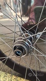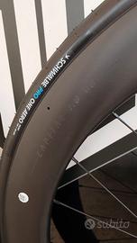 Coppia Ruote SYNCROS Capital 1.0 60 Disc compreso di copertoni , nuovi mai usate. Un’alternativa leggera alle Capital SL, le 1.0 Aero sono dotate degli stessi cerchi leggeri in fibra di carbonio con canale da 25 mm dietro e 23 mm davanti uniti ai mozzi SYNCROS. Leggere, veloci e a un prezzo fantastico. Tipologia : strada, gravel Materiale : carbonio Cerchio : Fibra di carbonio Hookless Altezza 60 mm canale anteriore 23 mm posteriore 25 mm. Nipples Sapim Raggi Sapim Mozzo anteriore e posteriore : SYncros Asse della ruota : perno passante Peso : 1550 gr. Limite del peso : 120kg Pressione degli pneumatici Min-Max : 1,4‑5,0 bar/20‑72,5 psi Larghezza del pneumatico Min-Max : pneumatico Min-Max Ruota anteriore: 28‑50 mm Ruota posteriore: 29-50 mm Ruota libera : SHIMANO HG Compatibilità pneumatici : Hookless/predisposte per tubeless Prezzo consigliato : 1099,99 euro Prezzo non trattabile