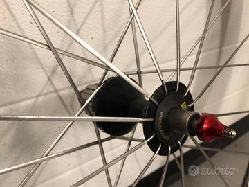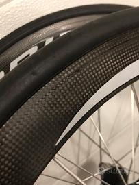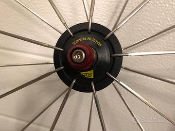 Vendo coppia ruote corima aero profilo 46, corpetto shimano 10v, come si vede in foto, le ruote sono perfette in tutto (idem i cuscinetti), MA la posteriore ha un punto dove la pista frenante è leggermente “ondulata” (si vede in foto), e si sente un minimo in frenata. Io le ho usate tranquillamente e non danno nessun problema (non è strutturale e non compromette minimamente la sicurezza o la tenuta). Per questo motivo il prezzo è basso, perche le ruote per il resto sono perfettissime senza mezzo segno come si vede nelle foto.