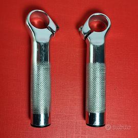 Usato in condizioni più che ottime, molto pochi e molto lievi i segni d'uso. Lunghezza utile cm10, totale cm 12,8, diametro utile cm 2/2,3, peso coppia g 124, materiale alluminio, viti acciaio, tappi plastica.