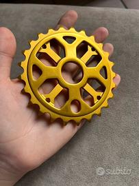 Vendo corona Mafiabike 25 denti (25T) in alluminio, colore oro anodizzato. Leggera e resistente, ideale per BMX e single speed. Design traforato per ridurre il peso senza perdere solidità. Buone condizioni, pronta per il montaggio