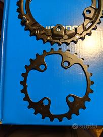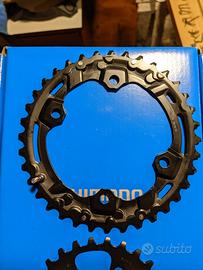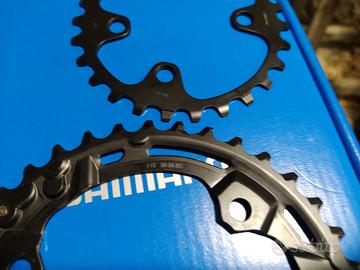 Coppia di corone Shimano Deore 11 velocità nuove. Le ho smontate da una guarnitura deore FC-M5100 nuova per un cambio rapporti. Non hanno percorso un solo km, mai toccato una catena.