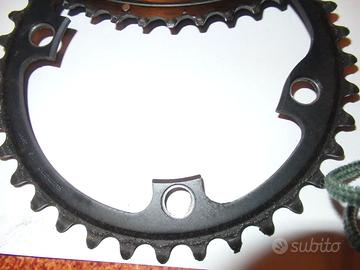 Corone per guarnitura SHIMANO Ultegra con 5000 km...hanno ancora la vernice nera sui denti :-) dentatura 52 36 perfette visibili a Trieste