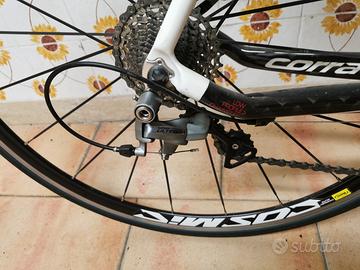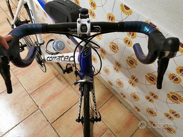 Bici revisionata lo scorso anno ma non più utilizzata per cambio hobby. È stata fatta una revisione completa da meccanico bici con movimento centrale nuovo, cuscinetti manubrio, regolazione cambio e nastro manubrio nuovo più altro che non ricordo. Bici in carbonio con peso di 8 kg precisi. Monta cambio ultegra 105 e ruote Mavic cosmic. Sono alto 181 circa. Volendo a parte ho scarpe e abbigliamento bici