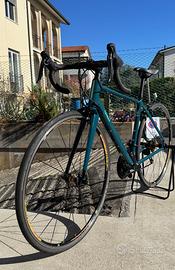 Bici ottima per avvicinarsi al ciclismo su strada. Consigliato da Decathlon per donne da 1m60 a 1m71. CARATTERISTICHE: Telaio in alluminio 6061 e forcella in carbonio. Gruppo Shimano Sora 2X9V R3000. Guarnitura compatta: 50X34. Pedivelle: 165mm Cassetta Microshift 11X32 (11-13-15-17-19-24-28-32). Leve dei freni Shimano Sora adatte per le mani piccole. Corpi freno Tektro R539. Sella confortevole specifica da donna Manubrio in alluminio larghezza asse-asse: 380 mm Attacco manubrio in alluminio lunghezza: 80mm. NON SPEDISCO PREZZO NON TRATTABILE
