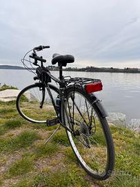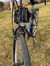 Vendo Cortina Cruise 28” da uomo, colore nero, ottimo stato. Sempre tenuta al coperto, revisionata regolarmente. Pronta da usare subito, nessuna spesa extra. INCLUSO NEL PREZZO: •Portapacchi posteriore + anteriore •Borsa da telaio con tasca smartphone •Portabottiglie con borraccia •Luci anteriore e posteriore funzionanti •Parafanghi anteriore e posteriore •Cavalletto laterale •Campanello COMPONENTI: •Cambio Shimano 6 velocità, fluido e preciso •Telaio in acciaio, verniciatura nera integra •Sella comfort anatomica •Freni efficienti, gomme in ottimo stato •Ruote 28”, cerchi in alluminio Altezza ideale acquirente: 170–185 cm. Vendo per inutilizzo. Ritiro a mano a Varese (VA). No permute.