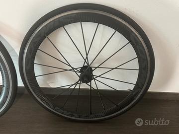 Vendo coppia ruote cosmic carbone SLR + ruota cosmic carbone anteriore per pezzi di ricambio. No corpetto e pacco pignoni