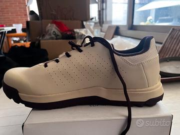 Bellissima scarpa per gravel stile classico completa di attacchi dorati. Scarpa MAI indossata taglia 42.