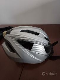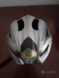 casco da bici di colore grigio con rotella per regolazione posteriore e luce anch'essa posteriore. Taglia M piccola ammaccatura come da foto. eventuali costi di spedizione saranno a carico dell'acquirente e verranno sommati al prezzo dell'oggetto
