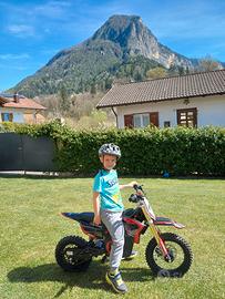 Cross elettrica per bambini da 6-12 anni perfetta, come nuova, con motore 36V potenza 1000W, completamente regolabile in velocità, potenza e risposta. Velocità massima circa 28 km/h, autonomia 1-2 ore, ricarica in 6-8 ore, chiavi di sicurezza. Altezza sella 62 cm, carico massimo 80kg.