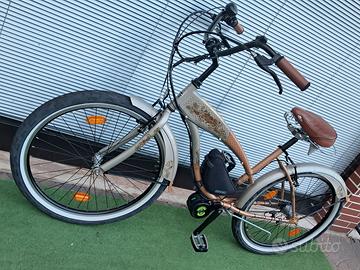 CON CAMBIO SHIMANO NEXUS 3 VELOCITA', FRENI V-BRAKE, ALLESTITA CON PARAFANGHI CON DISEGNO VERNICIATO, MANUBRIO MOLTO COMODO PER UNA GUIDA RILASSANTE, SELLA MOLTO CONFORTEVOLE.