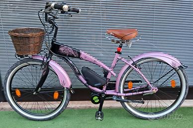 CON CAMBIO SHIMANO NEXUS 3 VELOCITA', FRENI V-BRAKE, ALLESTITA CON PARAFANGHI CON DISEGNO VERNICIATO, MANUBRIO MOLTO COMODO PER UNA GUIDA RILASSANTE, SELLA MOLTO CONFORTEVOLE.