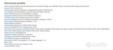 TELAIO IN CARBONIO AERO C:68 E GRUPPO SHIMANO DURA ACE DI2 12 SPEED CON POWERMETER LA COLLOCANO AL VERTICE DELLA CATEGORIA!