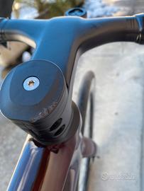 La bici è in ottime condizioni, presenta solo un segno puramente estetico sulla vernice del tubo obliquo (vedi foto) e un segno su top cap (vedi foto).