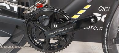 Bici nuova collezione 2024, in taglia 52. Codice: 779700 Peso: 6,6 kg. Telaio: Carbonio C:68X carbonio di Alto modulo il TOP per CUBE (replica del team Professionistico) Peso solo telaio: 799gr. Gruppo: Shimano DURA ACE R9270 con Power Meter (sensore di potenza) Comandi: Shimano Dura Ace Di2 ST-R9270 Dischi: CL900 ant.160- post. 160mm Cambio: Shimano Dura Ace Di2 RD-R9250-D, 12-Speed Deragliatore: Shimano Dura Ace Di2 FD-R9250-F Movimento centrale: Shimano SM-BB71-41B, 86mm Pressfit Guarnitura: Shimano Dura Ace FC-R9200-P, Powermeter, Hollowtech ll, Corone: 52x36T oppure 50x34 Pacco pignoni: Shimano Dura Ace CS-R9200, 11-30T oppure 11-34 Catena: Shimano CN-M9100 Ruote: Newmen Advanced SL R.50 CS Streem, VONOA Aero con raggi in carbonio Gomme: Continental Grand Prix 5000 TT, Ant: 25-622 Post: 28-622 Manubrio: Carbonio ICR Cockpit System, Integrated Cable Routing, Aero Spacer System Supporto: Garmin Mount Interface NO PERMUTE
