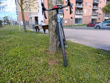 Vendo bellissima bicicletta Cube Nuroad Race (Gravel), la bici è tenuta con cura e appena revisionata da meccanico professionista. La bici è pronta all'uso, pulita e lubrificata, perfetta per asfalto, strade bianche e cicloturismo. CARATTERISTICHE PRINCIPALI: Marca: Cube Modello: Nuroad Race Telaio: Alluminio leggero HPA (High Performance Aluminium). Forcella: In carbonio (assorbe le vibrazioni). Gruppo: Shimano GRX / 105 (cambio fluido e preciso). Freni: A disco idraulici (potenti in ogni condizione). Taglia: 56 (corrisponde a L) La bici è meccanicamente perfetta (appena stata revisionata ). Presenta solo normali segni di utilizzo estetico che non ne pregiudicano le prestazioni. La trasmissione è pulita e lubrificata. Disponibile per visione e prova a MILANO. Non spedisco, solo ritiro a mano. prezzo trattabile