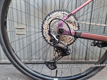 Gravel in taglia S, senza segni né graffi. Sostituito rotori freni con modello superiore. Cerchi in versione tubeless con copertoni Pirelli 700x35. Disponibile ulteriore set di copertoni Schwalbe 700x45. Pedali Shimano SPD XT. Attacco integrato al manubrio per navigatore. Borsa sottosella e borsa tubo orizzontale comprese. Peso10,3 kg TelaioAluminium 6061 T6 Superlite, Internal Cable Routing, Integrated Seat Post Clamp, Flat Mount Disc, Fender & Rack Option, 12x142mm, UDH™ coloremolotov´n´black ForcellaCUBE C:62® Technology, 1 1/8" - 1 1/2" Tapered, Integrated Cable Routing, Flat Mount Disc, Fender & Lowrider Mounts, Internal Light Cable Option, 12x100mm Manubrio Newmen Advanced Gravel Bar 318, Carbon, 31.8mm CambioShimano GRX RD-RX822-SGS, 12-Speed Leve del cambio/freniShimano GRX ST-RX820 FreniShimano GRX BR-RX820, Hydr. Disc Brake, Flat Mount (160) Movimento CentraleShimano BB-RS500PB, Pressfit GuarnituraShimano GRX FC-RX610, 40T Pacco pignoniShimano SLX CS-M7100, 10-51T CatenaShimano CN-M7100 RuoteRuote Newmen Performance X.R.25, 28/28 Spokes, 12x100mm / 12x142mm, Tubeless Ready CopertoniSchwalbe G-One R, Kevlar, TLR, 45-622 SellaACID Nuance Lite ReggisellaNewmen Advanced, Carbon, 27.2mm