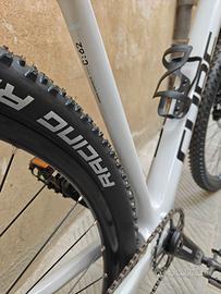 Vendo bici NUOVA IN SCATOLA, mai usata. Taglia XL, colore "Cotton White". L'avevo acquistata per un amico all'estero, ma a causa dei costi di spedizione eccessivi ho deciso di rivenderla. La bici è ovviamente ancora nel suo imballaggio originale, assolutamente intonsa. Includo in regalo i pedali e un portaborraccia che ho già acquistato. Il rapporto qualità-prezzo è imbattibile, con componenti di alto livello: Telaio: Full Carbon (Carbonio) Freni: Magura Forcella: SR Suntour Raidon 32 Air, Boost, 100mm, Remote Lockout Gomme: Schwalbe Cambio: SRAM con pacco pignoni 11-50 (ideale per le salite più impegnative) e corona anteriore da 32T. La bici è molto versatile (ibrida), perfetta per uso MTB, Touring, Gravel, viaggi o semplici passeggiate. Prezzo di listino: 1590 euro. Prezzo di vendita: 900 euro. Disponibile per il ritiro a mano o spedizione.