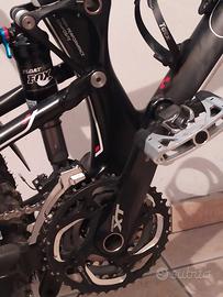 Cube Stereo SL : ruote Easton Heaven, forcella Fox 32 Factory, ammortizzatore Float Dps Factory revisionati, guarnitura Shimano XT 3x10, Freni Shimano XT 8000 appena fatto spurgo e pastiglie, dischi Rt66 nuovi,manubrio Syntace Carbon, regisella RockShox Reverb, sella Fizik Gobi Brited Carbon,parafango posteriore Cube in carbonio. In ottime condizioni usata poco. Non Spedisco e si accettano solo contanti.