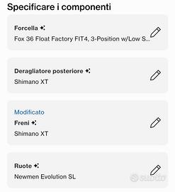 •Forcella anteriore: Fox 36 Float Factory FIT4, 150 mm, con regolazioni (inclusa Low-Speed Compression), rivestimento Kashima