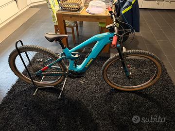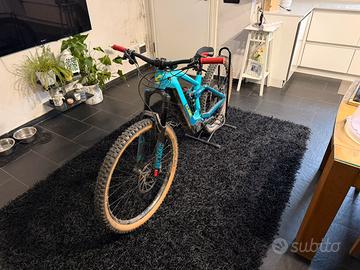 Vendo Cube Stereo Hybrid 140 HPC, e-bike full suspension in buone condizioni. Telaio principale in carbonio HPC con triangolo posteriore in alluminio, batteria Bosch PowerTube da 750 Wh completamente integrata e passaggio cavi interno. Sospensione completa con forcella Fox e ammortizzatore Fox, con escursione da 150 mm all’anteriore e 140 mm al posteriore. Motore Bosch Performance Line CX di quarta generazione con coppia da 85 Nm, sistema Bosch Smart con display Kiox 300, LED Remote e caricatore Bosch. Trasmissione monocorona Shimano a 12 velocità con cambio Shimano XT, comandi Shimano Deore e pacco pignoni Shimano. Freni a disco idraulici Shimano XT con dischi da 203 mm anteriore e posteriore. Ruote Newmen da 29” tubeless ready, copertoni Schwalbe Hans Dampf anteriori e posteriori. Manubrio Newmen, attacco Cube, componentistica ACID. Peso indicativo intorno ai 24 kg.