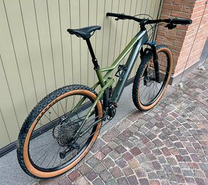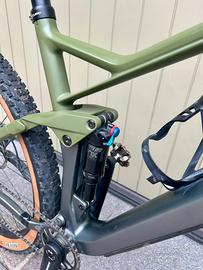 Bici full carbon/alluminio da trail con sospensioni Fox, trasmissione SRAM Eagle 12v e freni Shimano XT.