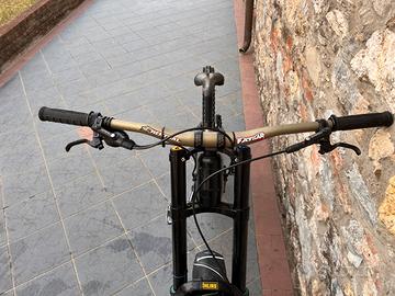 La bici si presenta pellicolata lateralmente sul trinagolo principale e e sul carro, riporta alcuni segni di usura dove non arriva la pellicola e all’interno nel carro