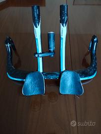 Curva manubrio da crono in carbonio completa di poggia gomiti e leve freno,larghezza curva esternamente 42 cm