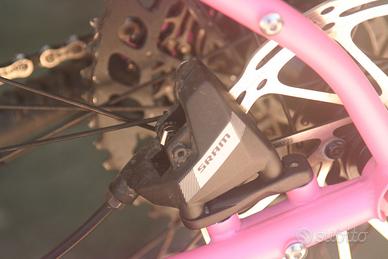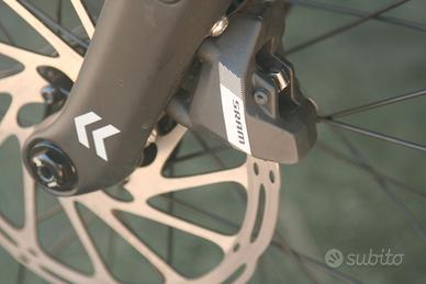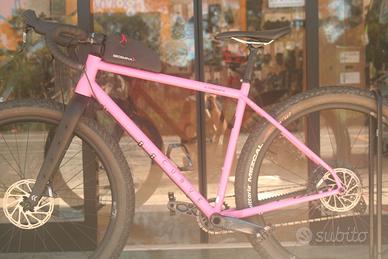 Bicicletta da viaggio molto versatile, nonostante le coperture generose è molto veloce, ideata per la Race to the Rock, può essere carica come un mulo. Telaio in acciaio Columbus, forcella in carbonio. La forcella supporta un carico di 8kg per lato utilizzando tre delle quattro viti. Gruppo SRAM Aper 1x12V. TG. SM per altezze da 160 a 170 LA bicicletta ha circa 200 km utilizzata come bici da esposizione e test. In omaggio borsetta Geosmina e porta borraccia Il prezzo di listino è di circa 4800,00