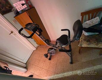 Questa cyclette è stata comprata su Amazon al prezzo di 250 €, è di colore nera e grigia molto comoda, offre anche uno schienale piccolino per appoggiarsi, poi si può anche alzare e abbassare in base all’altezza della persona. è stata utilizzata poche volte gli manca solamente una vite dietro al telecomandino. Poi, quando si utilizza si possono fare degli esercizi anche con le braccia si può mettere la potenza del giro dei piedi della cyclette Poi si può misurare il battito cardiaco i chilometri che si fanno e altre funzioni ci sono la vendiamo al prezzo di 100 € e la devi venire a prendere!!!!!