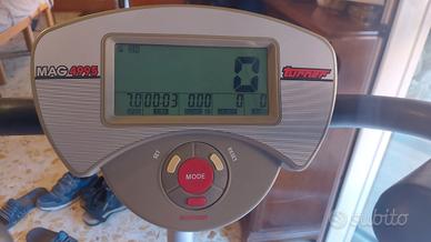 completa schermo Lcd, velocità calorie, km percorsi pulsazioni. lo schermo va a batteria. Impostazioni durezza pedali, maniglie alte e basse per mani. Spalliera gommapiuma rovinata causa gatto, ma basta mettere una federa sopra, non compromette la postura. Abbastanza pesante. Consegno presso mio domicilio, via Giorgio Giorgis 157 Fiumicino. Per il trasporto richiede una macchina capiente.