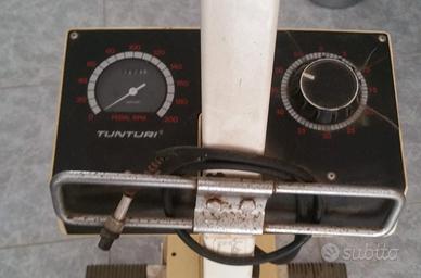 Cyclette Tunturi a freno magnetico con volano grande e ben equilibrato. La cyclette è datata ed è stata usata ma è funzionante. Ha bisogno di essere pulita e fatta un po' di manutenzione. Dato il peso, si consegna solo di persona.