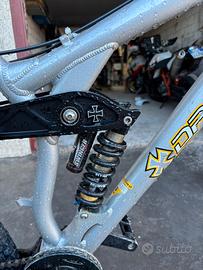 Vendo bici downhill freeride 26 Dabomb primi anni 2000. Buone condizioni generali. Sospensioni Marzocchi Bomber 888 vf 200mm. Ammortizzatore posteriore Manitou Swinger 6 way. Freni a disco idraulici Ztto nuovi. Dischi perfetti. Cerchi Alexrims. Mozzi A2Z components. Gomma anteriore Continental Trail King 26x2.4 NUOVA. Gomma posteriore Schwalbe Touch Tom 26x2.5 NUOVA. Cambio ok. Molto robusta e ottima per iniziare senza spendere una fortuna.