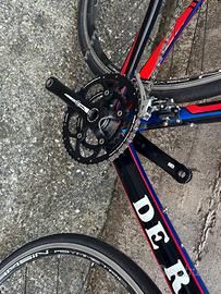 De rosa completamente in carbonio,misuratore 50 corrispondente ad una "S" Montata con campagnolo veloce a 10 velocità copertoncini vittoria e pattini freno appena sostituiti componentistica fsa,reggisella,manubrio,serie sterzo. Qualche piccolo graffio dovuto al normale utilizzo,ma bici nel suo complesso come nuova.