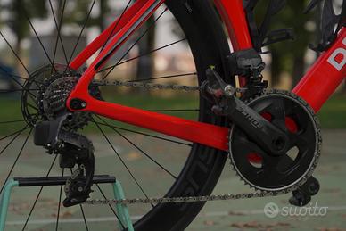 Telaio full carbon, usata con cura per allenamenti e gare di triathlon: equilibrio perfetto tra leggerezza, aerodinamica e prestazioni.